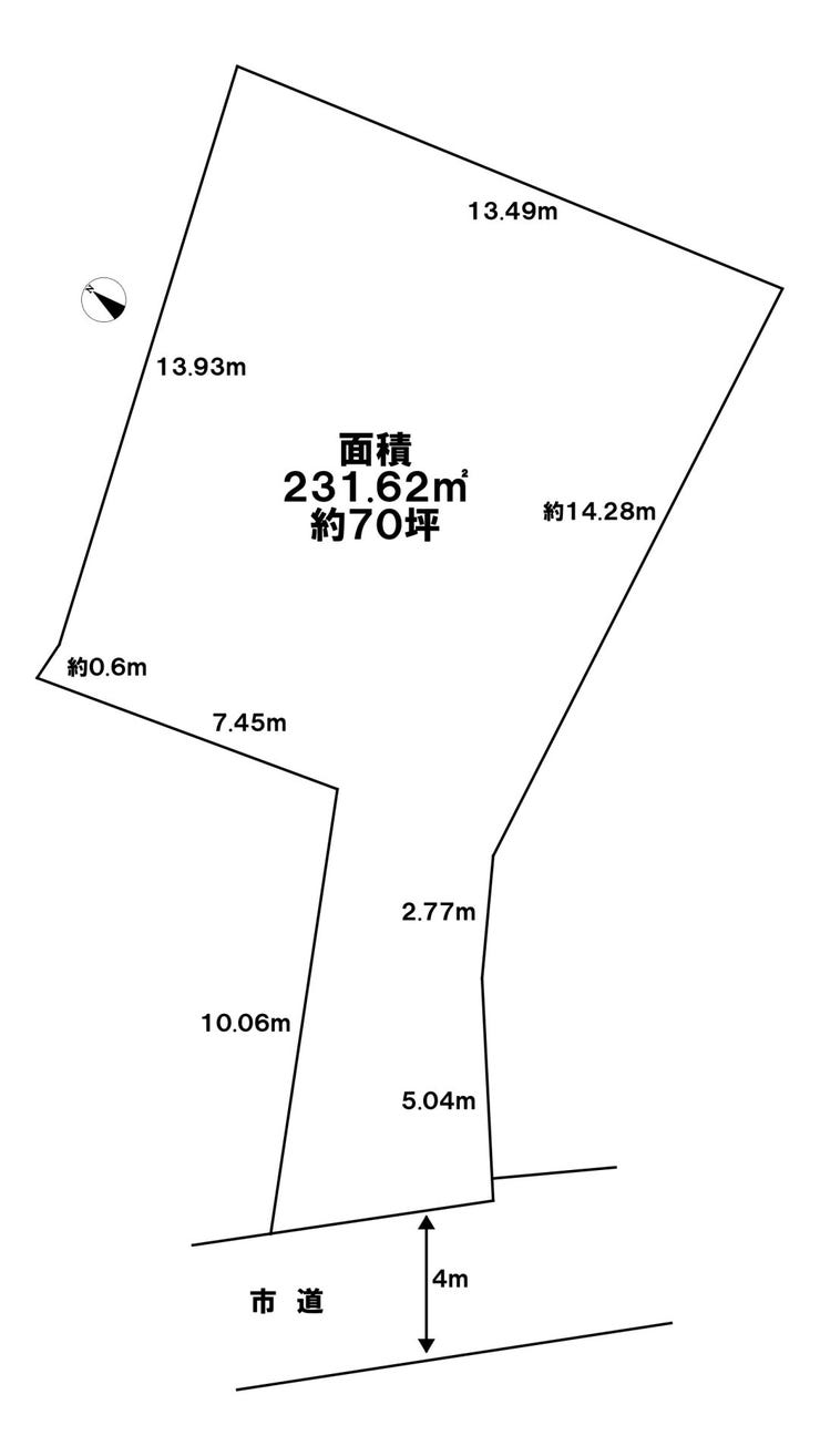 土地面積 実231.62㎡(70.06坪) 接道 南西側(公道)幅 約4.5m 間口 約4.90m